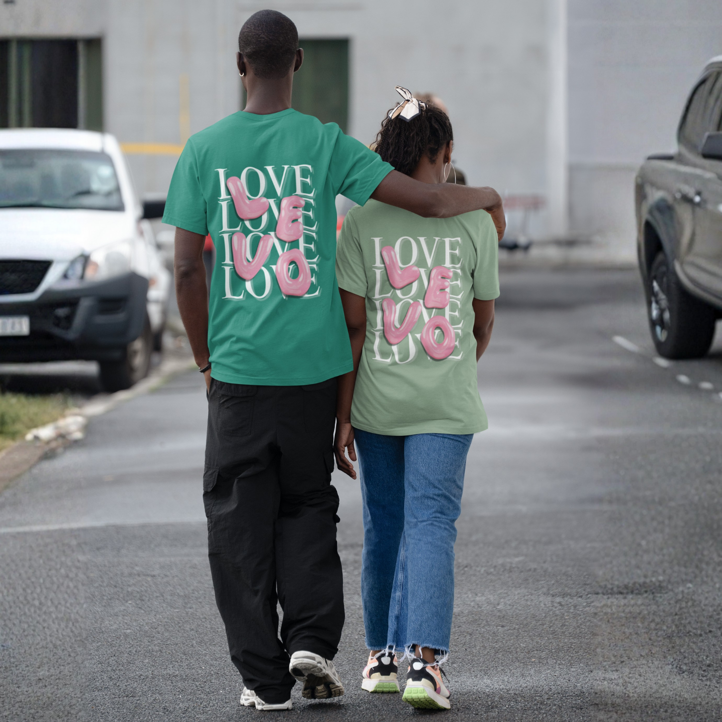 Its soft cotton base carries glossy pink bubble letters that spell LOVE again and again, reminding you that love isn’t loud — it’s constant, effortless, and everywhere.